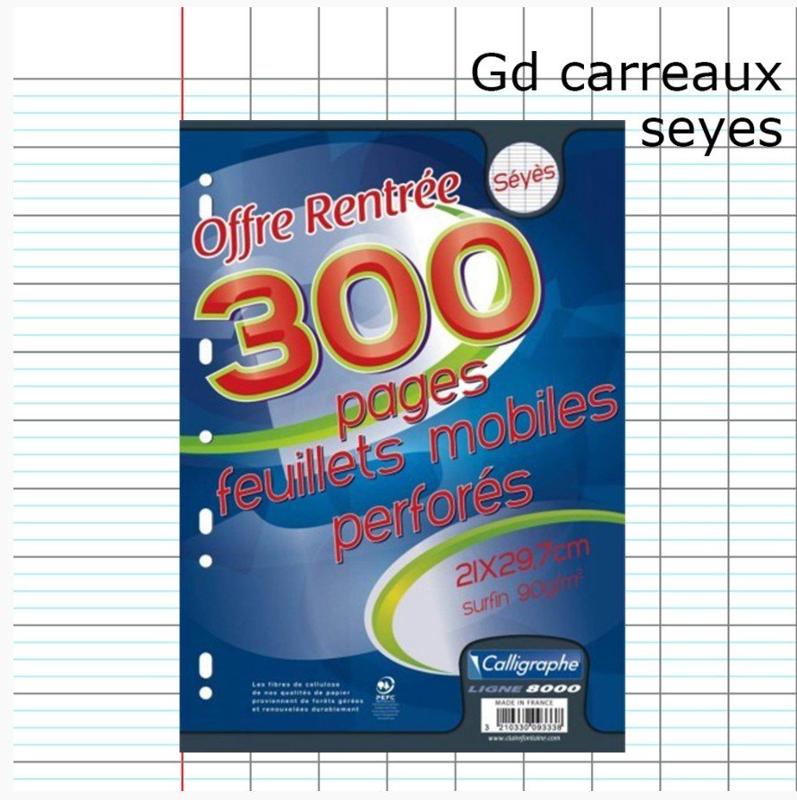 | Produit: | 300P CALLIGRAPHE A4 copies simples feuilles perforées Séyès |
